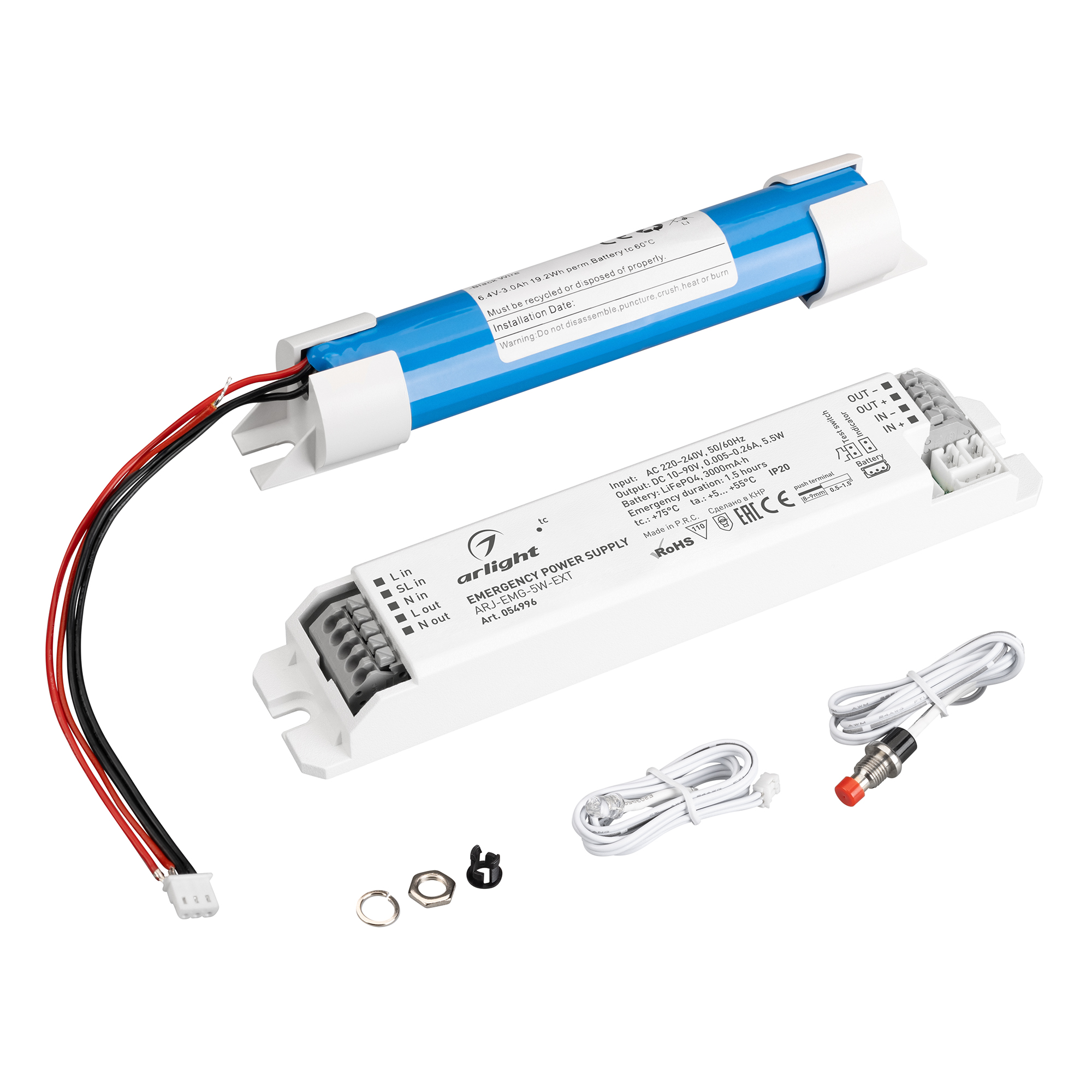 Блок аварийного питания ARJ-EMG-5W-EXT (10-90V, 1.5H, LiFePO4) (Arlight, IP20 Пластик, 3 года) 054996 в Набережных Челнах