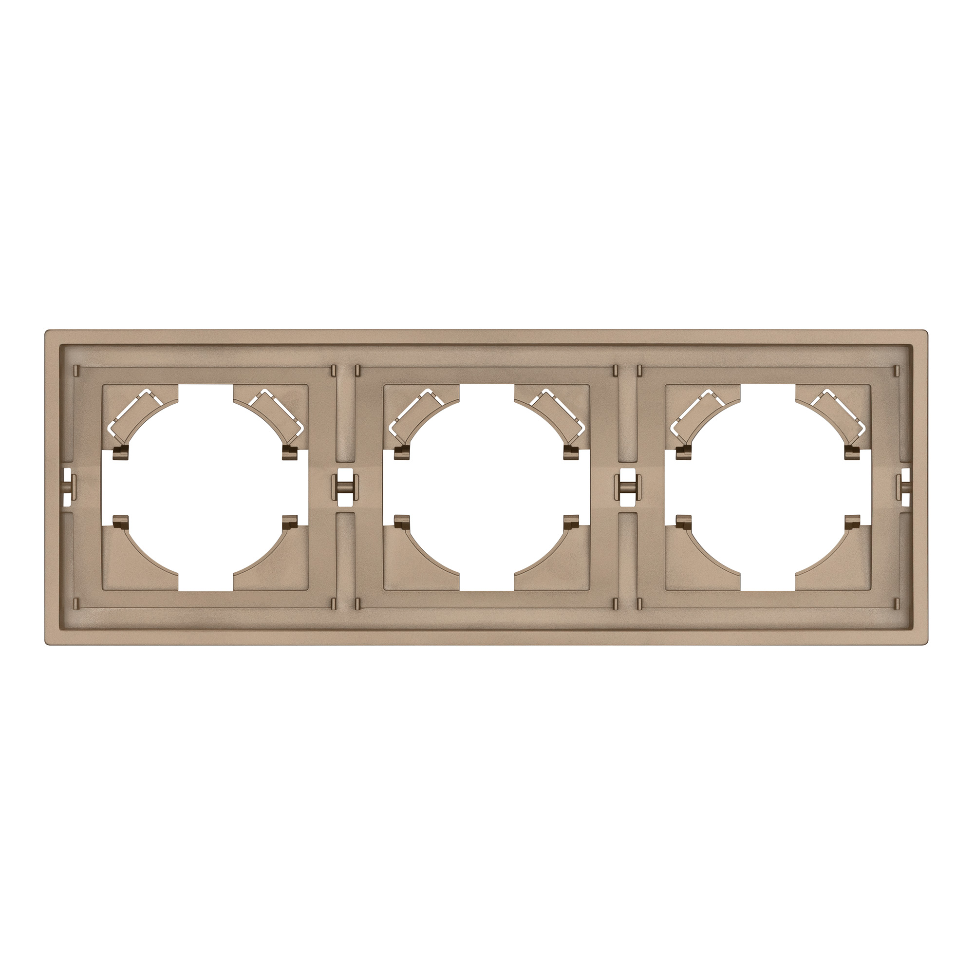 Рамка пластиковая на 3 поста, под встраиваемый механизм. Цвет - золотой. Среднего уровня герметичности IP20. Ориентация монтажа горизонтальная. Габаритные размеры: длина 221 мм, ширина 80 мм, высота 9 мм. Гарантийный срок 12 мес.