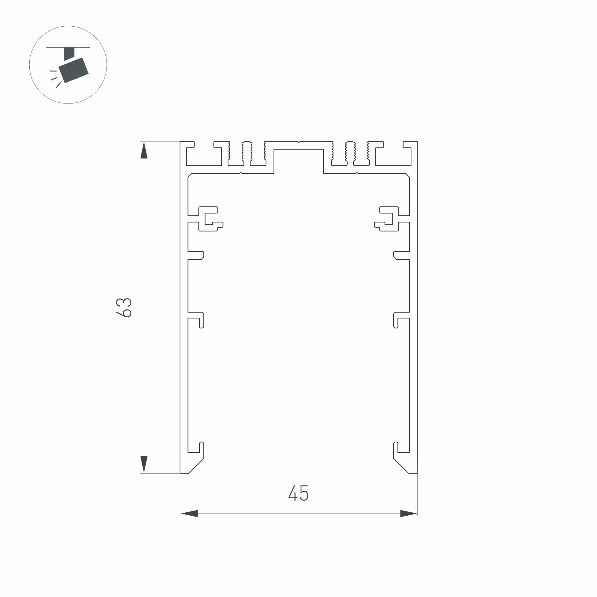 Подвесной/накладной/встраиваемый магнитный трек MAG-TRACK-4563-1000 (BK, 5LN) длиной 1000 мм. Напряжение питания 24 В. Две заглушки в комплекте. Аксессуары для подвесного монтажа в комплект не входят.